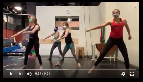 Snapshot of students dancing to a Bollywood song remotely, while they are wearing masks.